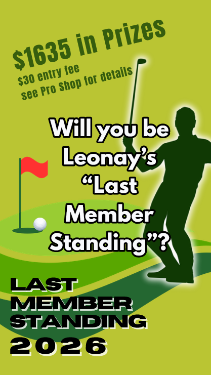 Last Member Standing is open to all Leonay Golfing members with a current GA Handicap. Entry Fee is $30 payable in the Pro Shop. Scores made before the Entry Fee is paid are not valid.